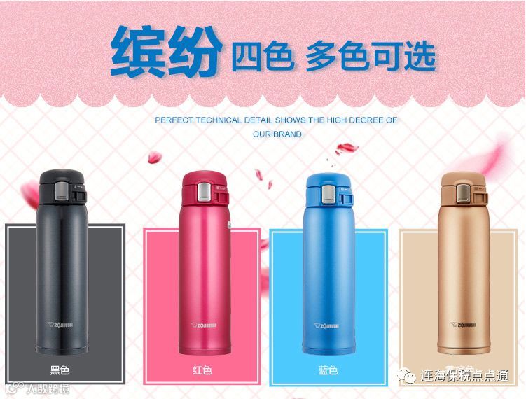 象印Zojirushi 轻巧单手弹盖保温杯壶 真空不锈钢保温杯 车载杯子 SM-SD48-Pv 黑色