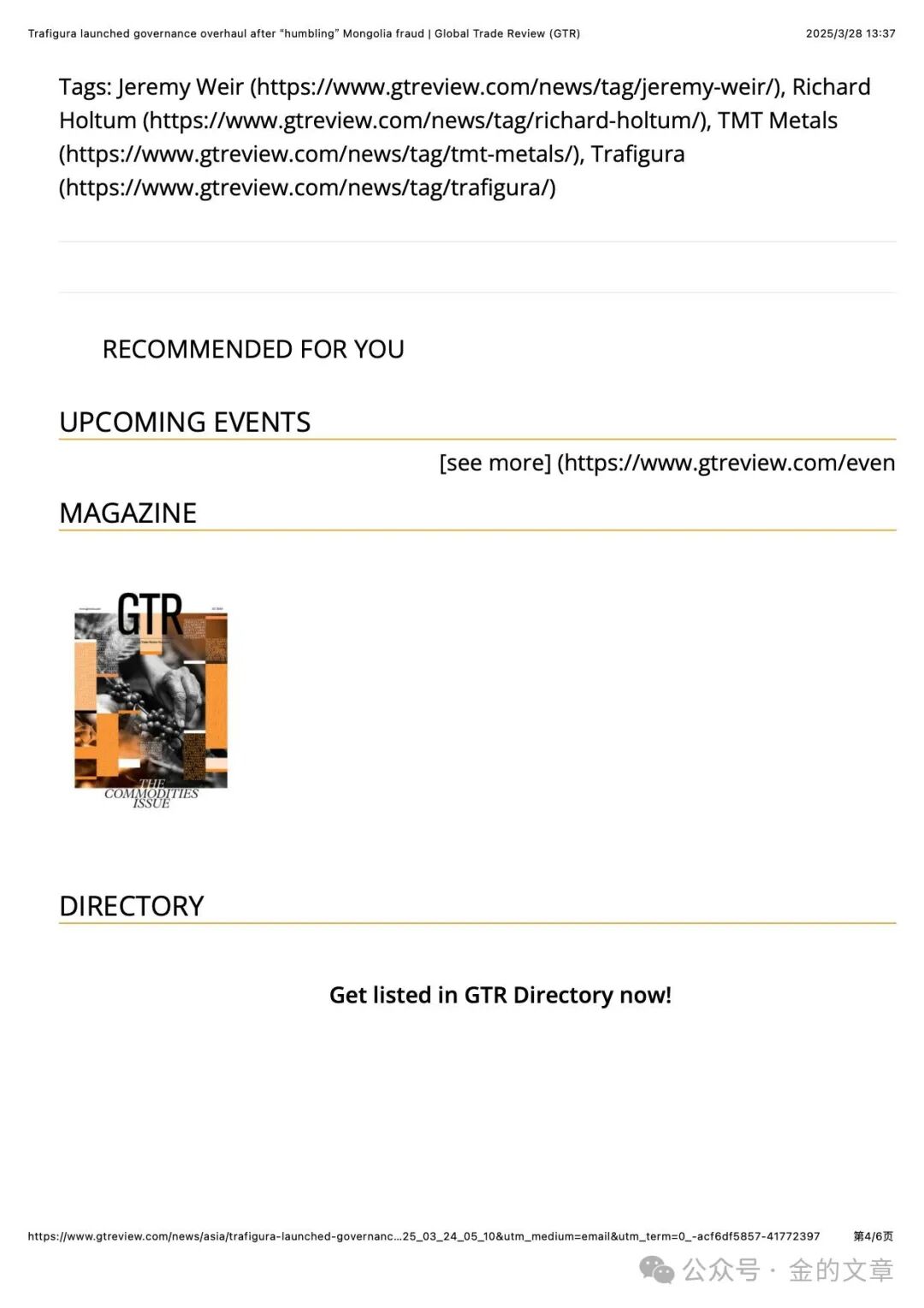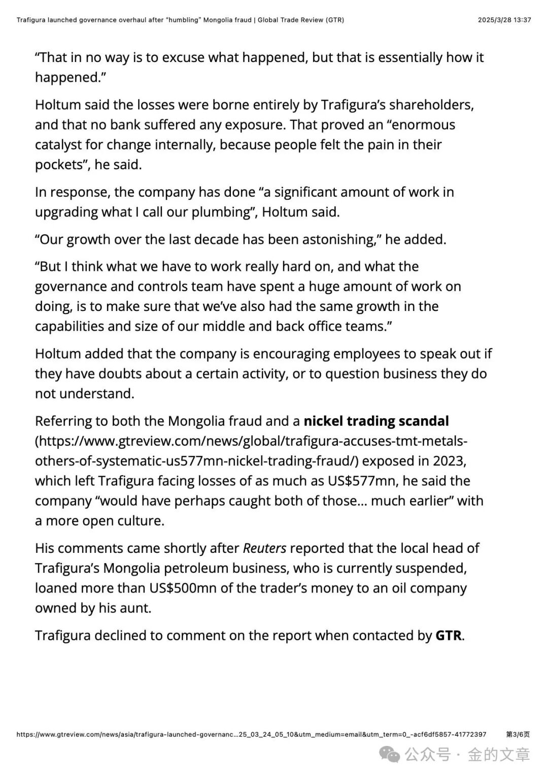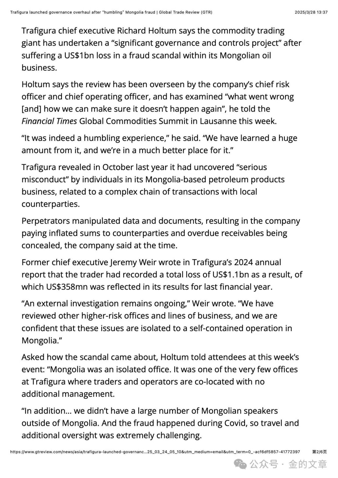 导读:GTR News: Trafigura launched governance overhaul after “humbling” Mongolia fraud.