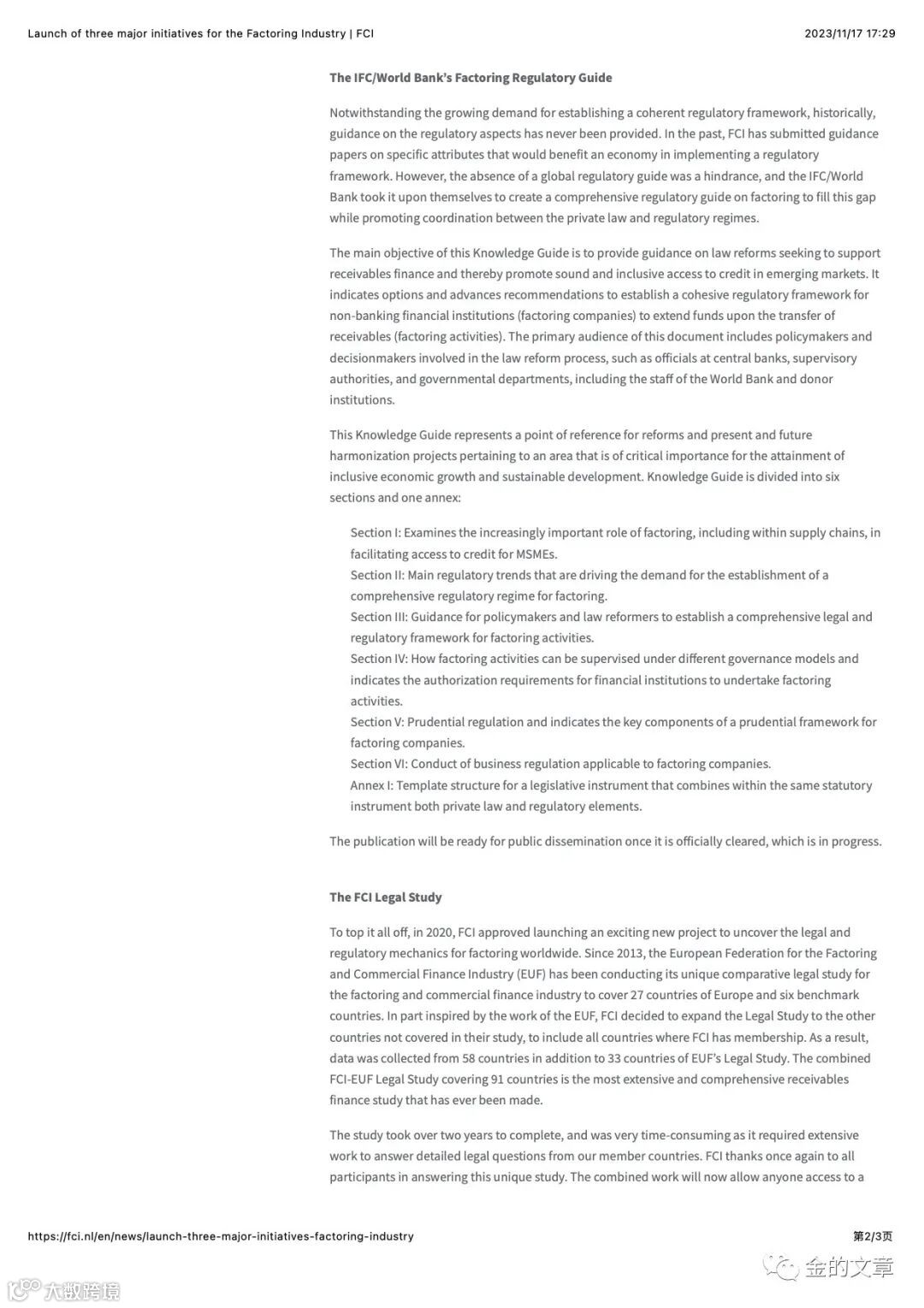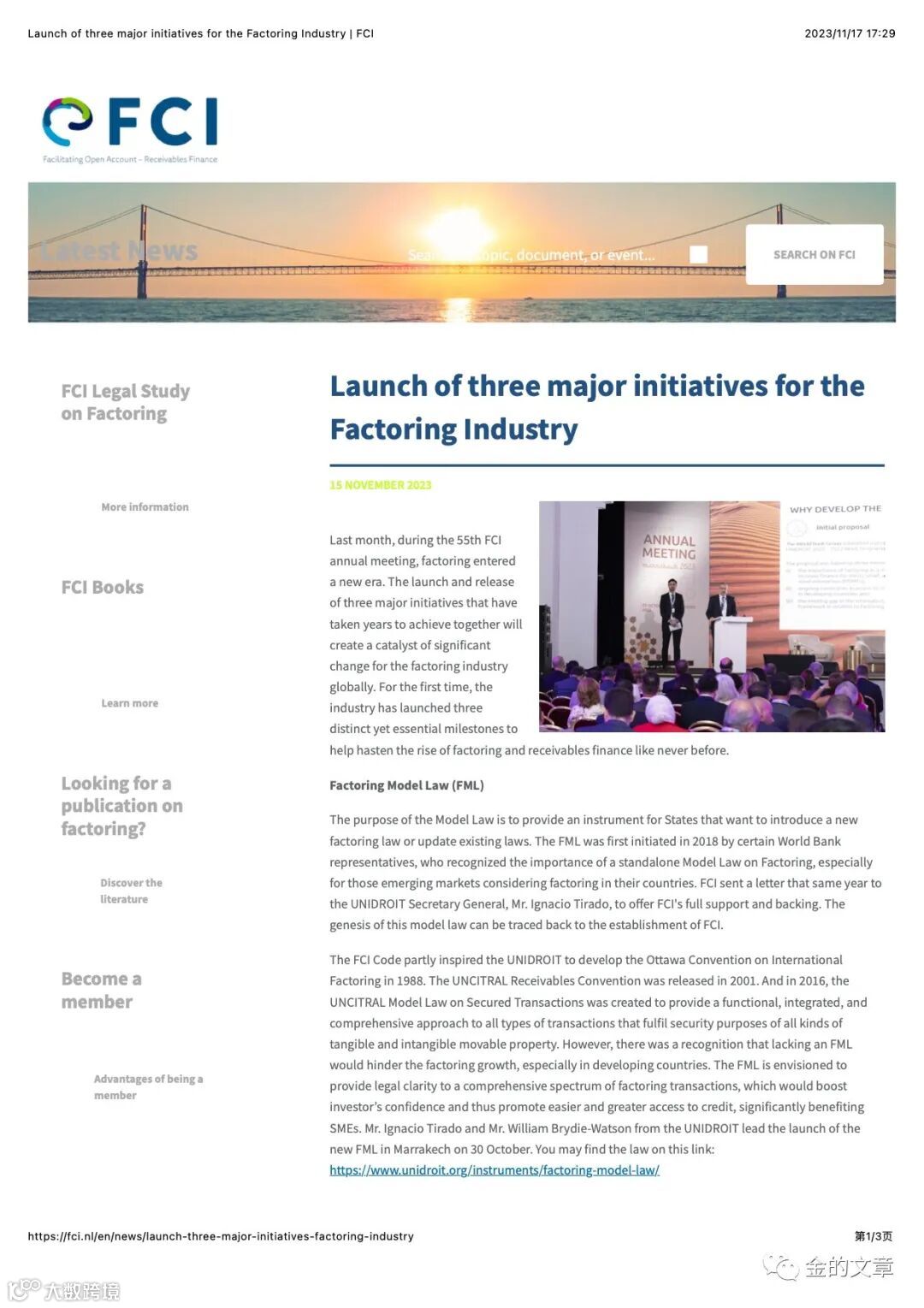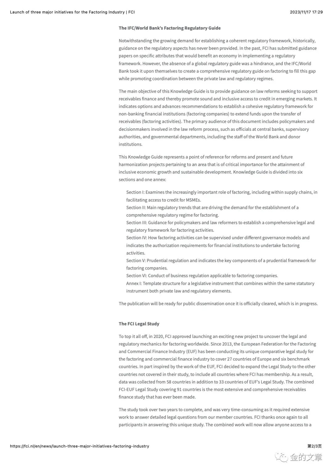 FCI开始保理行业的三个项目:保理示范法,世行保理规范指引,保理法律研究。