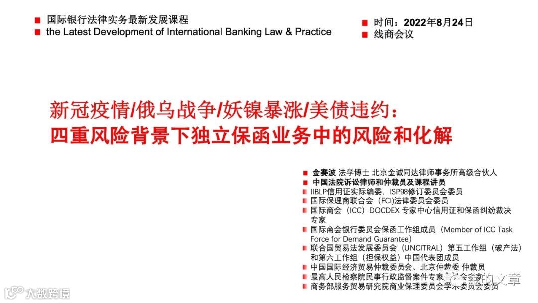 独立保函的风险和化解:最高法院独立保函司法解释及法院经典案例回顾-2022年8月24日的讲座视频