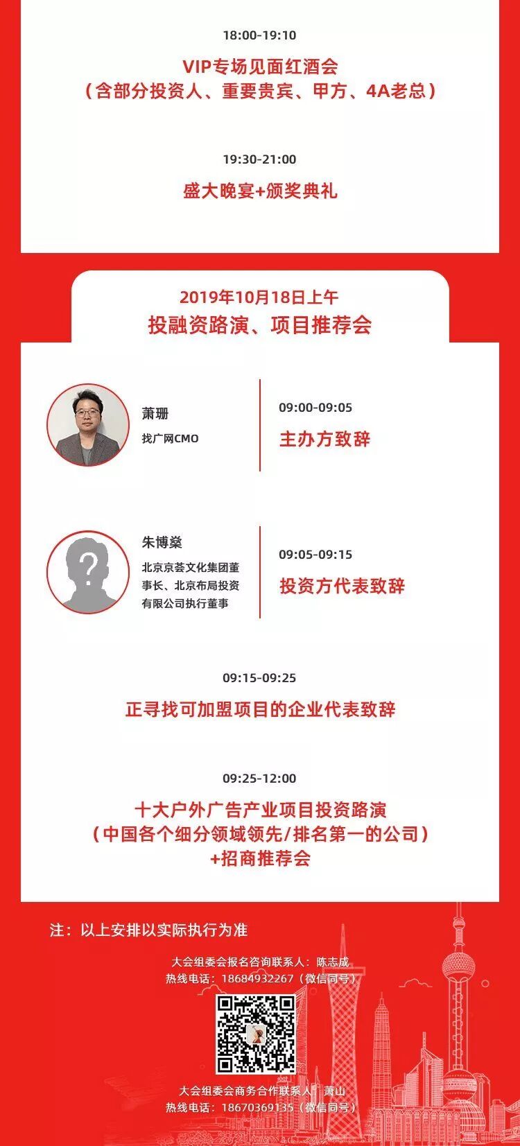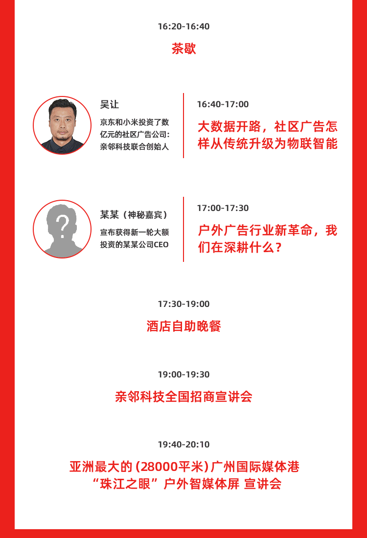 价值3800元/张的参会门票免费赠送,您将近距离与户外广告行业的专家大咖交流、对接,并有机会参加投融资路演会。