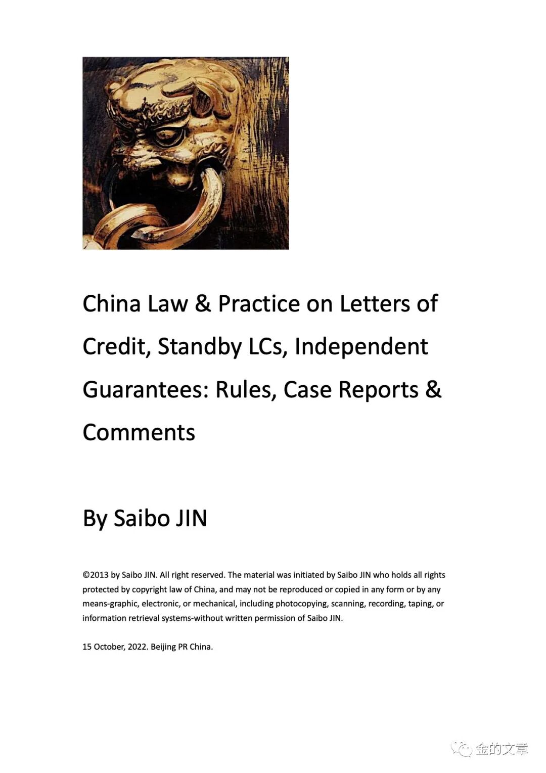 Please scan the following QR code for the video and text of the seminar on the latest development of Chinese legal practice, especially letters of credit, standby letters of credit, independent guarantees, chattel guarantees, and financial crimes, please scan the following QR Code: Wechat official account: "Jin's article" and Bili Bili website "Jin Saibo lawyer class" .