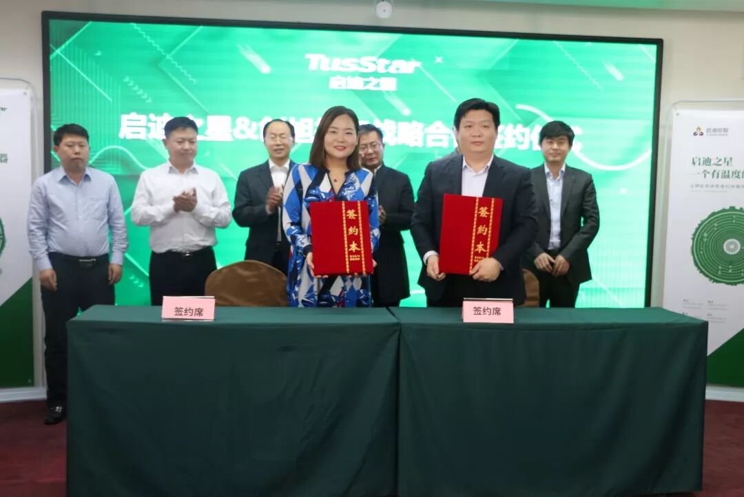 启迪之星创投总经理刘博代表启迪之星孵化器与青岛创旭投资有限公司代表顾建华签署启迪之星(青岛)科技金融孵化器战略合作协议