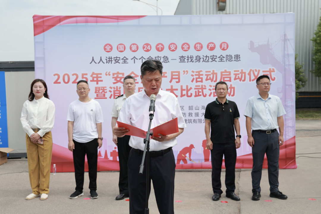 6月6日上午,中湘金鳞甲模块化建筑有限公司西坪变身 “安全能量场”,湘潭综保区“安全生产月”启动仪式暨消防应急大比武活动在此火热启幕。湘潭综保区党工委书记、管委会主任、安委会主任肖均平,市应急管理局党委委员、副局长董雀勇,韶山海关副关长梁栋,中湘智能建造有限公司党总支书记、董事长石拓,湘潭综保区领导班子成员,湘潭经开区消防救援大队、湘潭综保区和韶山海关全体干部职工,企业主要负责人和安全员、参赛队伍、安全管家等100余人参加活动。