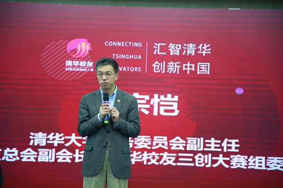 清华大学副校长、清华校友三创大赛组委会主任杨斌,清华大学校务委员会副主任、清华校友总会副会长、清华校友三创大赛组委会主任史宗恺,清华校友总会秘书长、清华校友三创大赛组委会执行副主任唐杰出席会议并讲话。