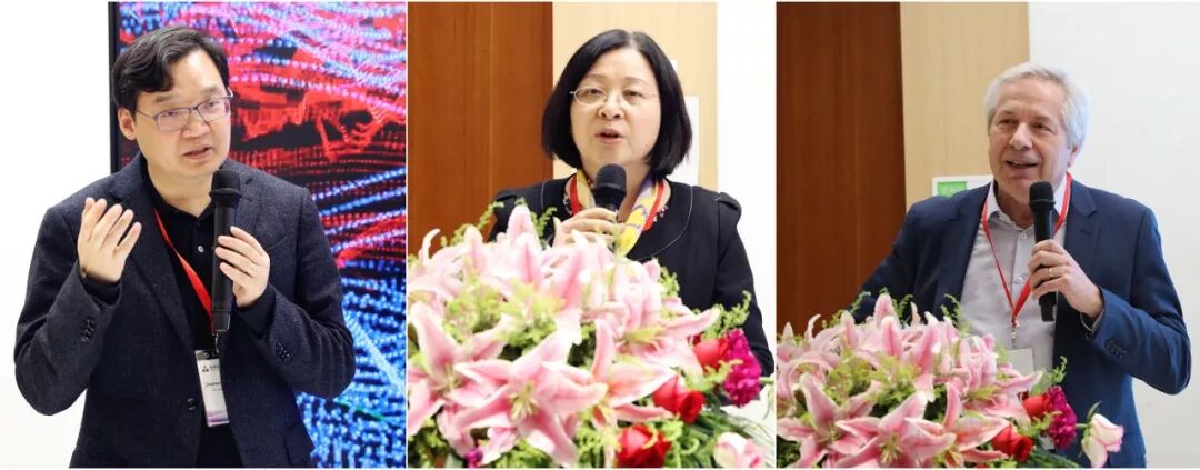 中关村科技园区管理委员会副主任侯云(中),启迪控股副总裁、启迪之星董事长张金生(左)、创新英国创新总监让·弗朗索瓦·范·威尔(右)致辞