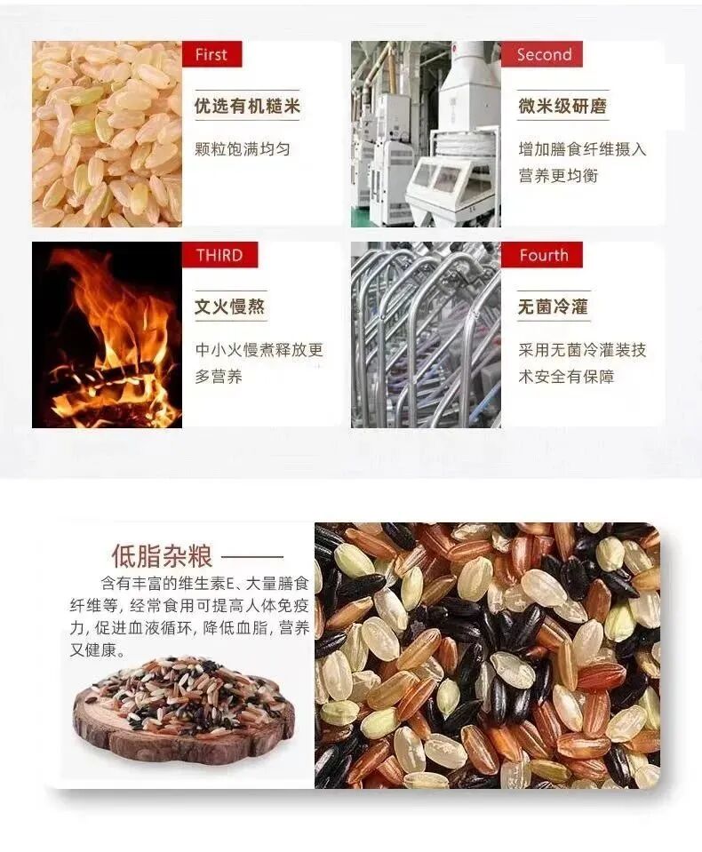 食材虽简,工艺不凡!这款饮品是新型谷物饮料,主要原料选用有机水稻种植基地种植的有机糙米、红米、黑米+从南雄珠玑镇君子岭引流而来的山泉水调配而成!真正天然营养有健康!