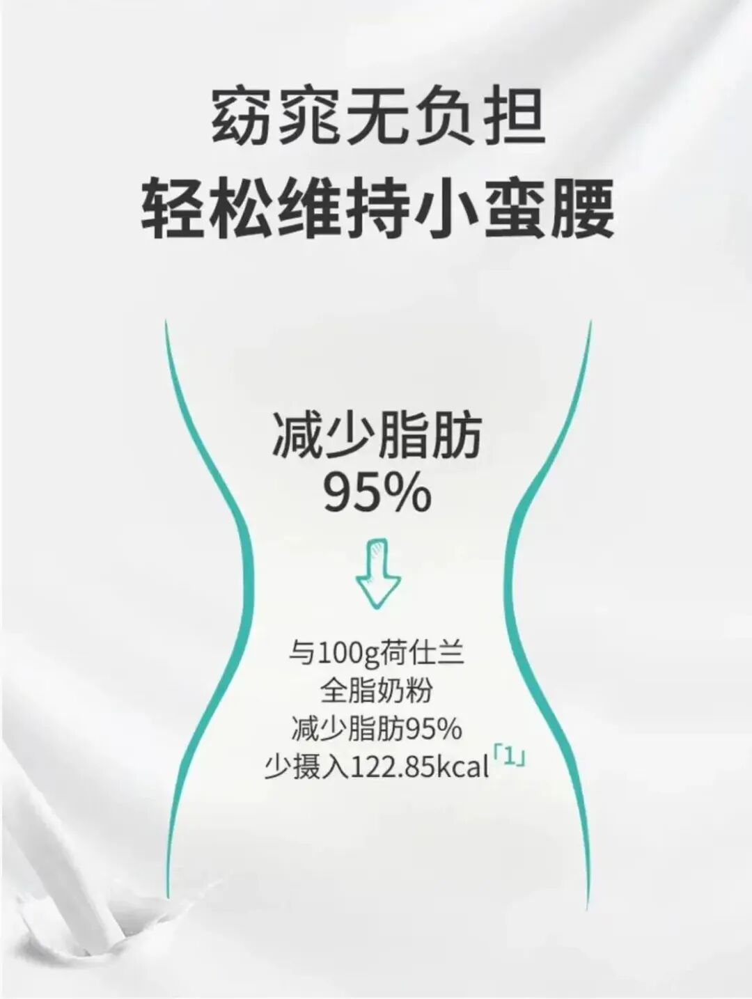 脱脂更轻盈,奶味不流失!原装进口,天然牧场~含高钙配方,应钙质所需!每100g含钙含量1100mg!每天两杯,可满足每日所需钙含量65.75%~