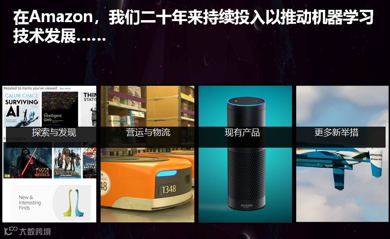 很多年之前大家在亚马逊购物时,亚马逊就推出了很多学习和推荐引擎。后来随着学习和搜索引擎的逐渐成熟,亚马逊又将目光转向了机器人领域。在AWS后台仓库系统中研制出来的走路机器人,能把相关物品送到快递员的手上;语音音像系统Amazon,一款技术含量非常高的家庭产品,可以通过语音方式进行沟通。
