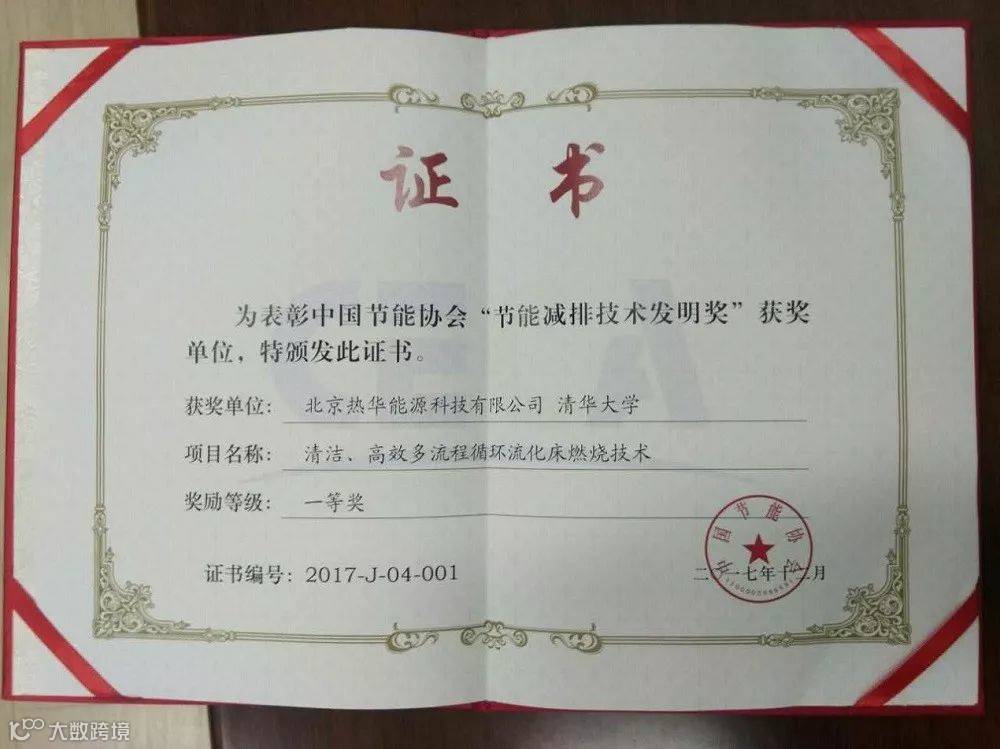 12月22日,在中国节能协会举办的“2017年中国节能与低碳发展论坛”上,清华科技园钻石计划企业——北京热华能源科技有限公司和清华大学联合申报的《清洁、高效多流程循环流化床燃烧技术》荣获中国节能协会创新奖-节能减排技术发明奖一等奖。清华大学能源动力系李清海博士出席领奖典礼。