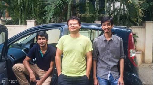 Gozoomo 联合创始人阿纳夫·库玛(Arnav Kumar),海芒术·周缇·哈扎瑞卡(Himangshu JyotiHazarika),安凯特·班汉拉(Ankit Behera)
