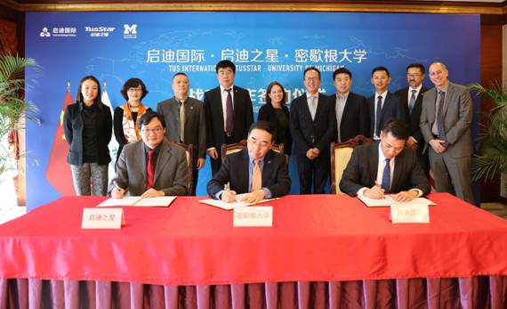 站在启迪控股千亿科技服务集团的大平台之上,启迪之星的国际化之路一直不断向纵深发展。就在昨天(1月18日),国际化方面又传捷讯——启迪之星、启迪国际与美国密歇根大学在京签订战略合作协议,三方共建中美科技孵化基地,设立创投基金,重点关注发展智能出行、智能制造等科研领域。