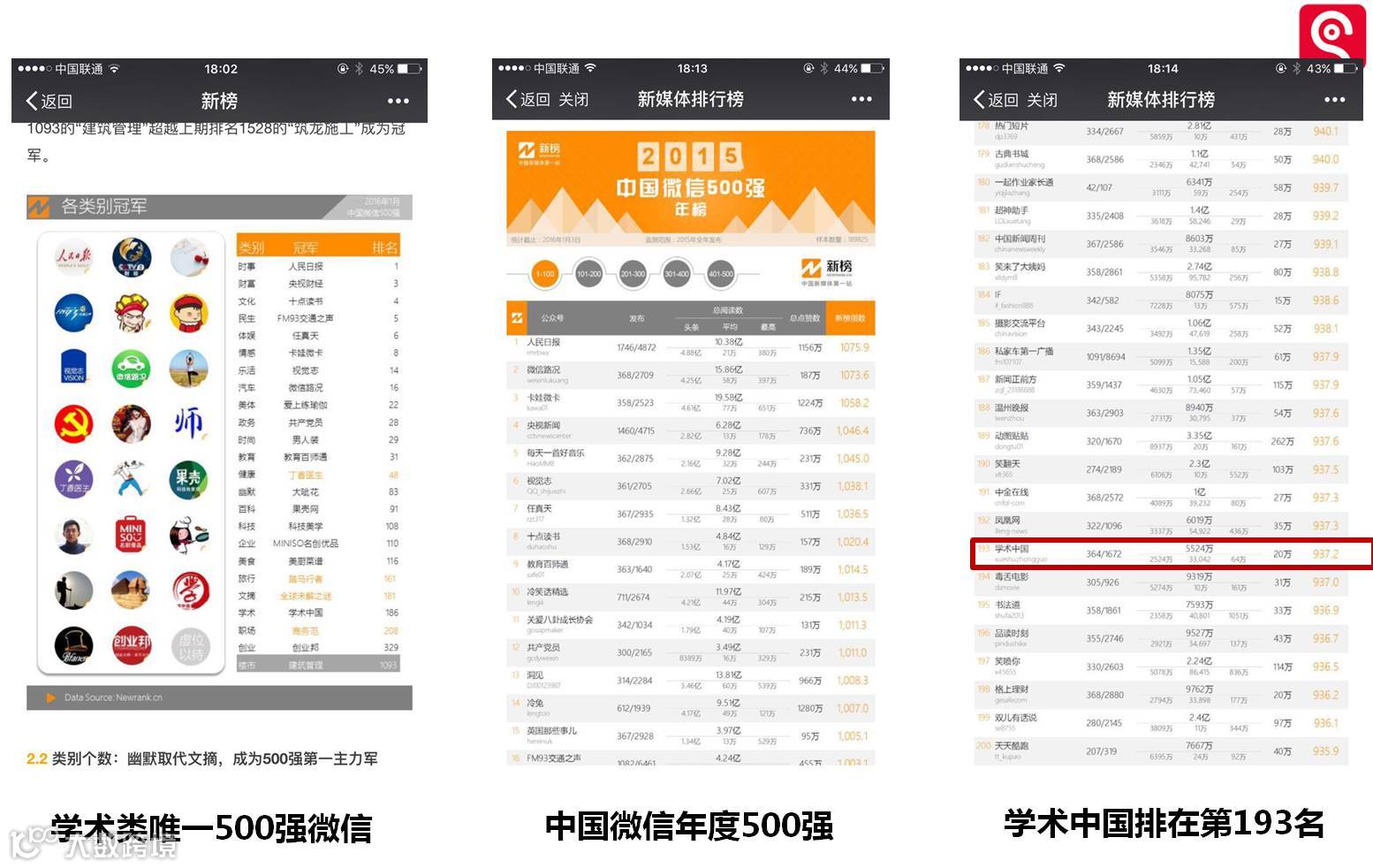 凝聚百万粉丝的学术微信矩阵。深耕学术知识服务市场,旗下拥有学术中国、知深、质化研究、出版排行榜、中华博士智库、考博圈等微信公众平台,拥有粉丝过百万,是影响力最大的学术微信矩阵平台。其中,学术中国是最大的学术类微信平台,也是唯一进入微信500强的学术类微信平台。