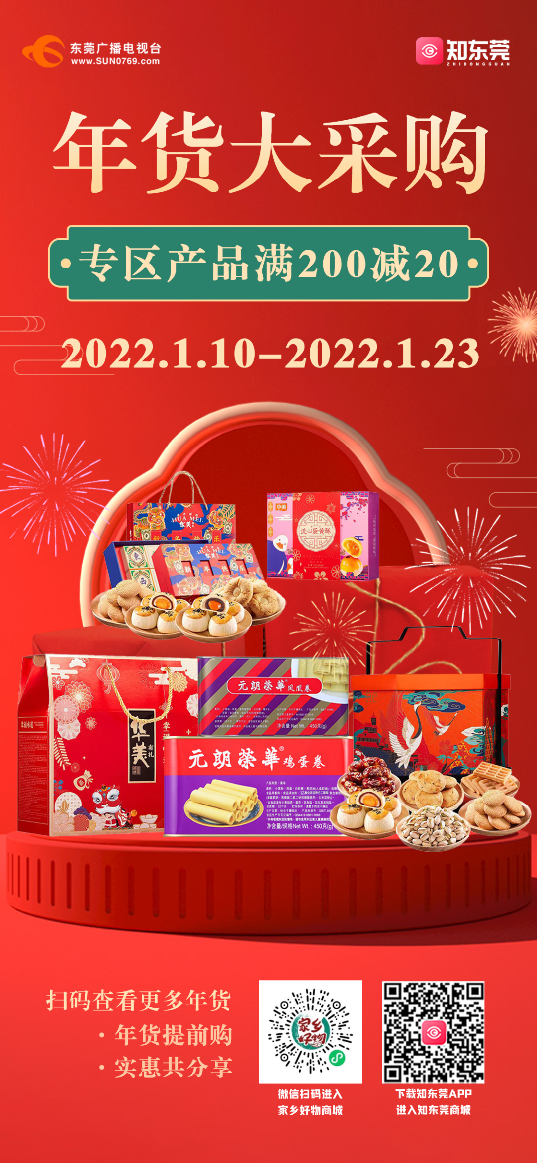1.10-1.23,“家乡好物”商城小程序“年货大采购”专区,产品满200减20。另外,“家乡好物”知东莞商城“年货专区”产品全部8.8折哦!