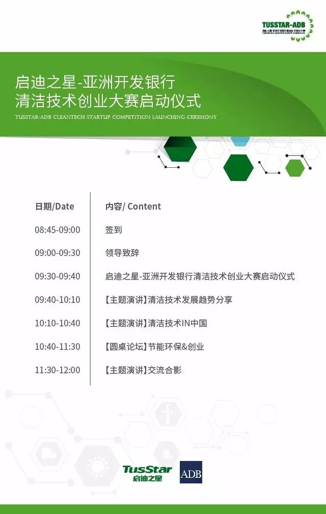 5月14日上午,启迪控股与亚洲开发银行合作举办的启迪之星-亚洲开发银行“清洁技术创业大赛”启动仪式将在清华科技园阳光厅举行。