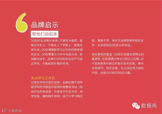 00后的生活相对单调。不是在书桌前,就是在手机上; 不是在上下学路上,就是在家补休。00后需要除学习之外的内容来调剂生活;00后需要从书本中抬起头来,即动脑也动手。品牌针对00后的活动不可越过学校,只能起到补缺的作用。