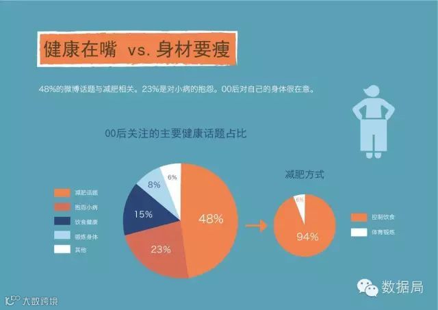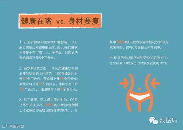 培养运动习惯,从嘴到腿,00后虽然有健康意识,但实际行动仍集中于饮食控制。引导00后养成运动习惯,从嘴到腿,是为2-3年后运动服装、可穿戴装备等健康相关品类的持续增长做准备。
