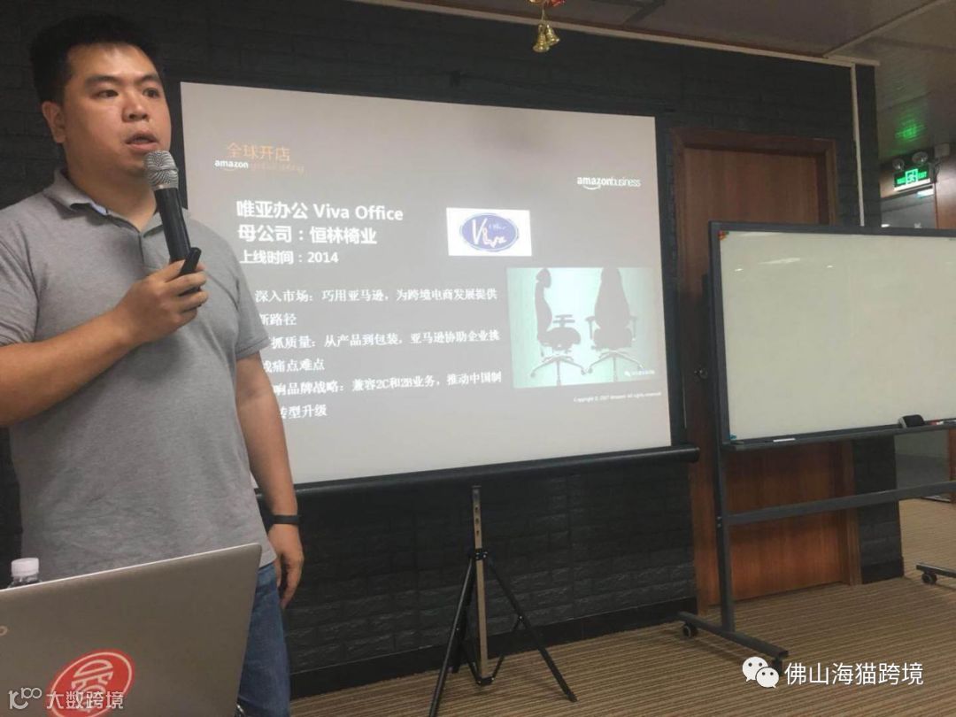上午11:00分,学员们抵达深圳海猫跨境总部。第一场首先由亚马逊B2B招商经理Eddie为大家分享亚马逊FBA物流和市场分析。让学员们更加进一步了解亚马逊体系,为下一步的规划建立明确目标。