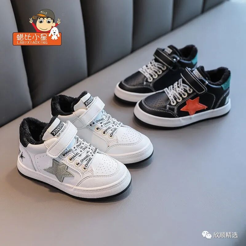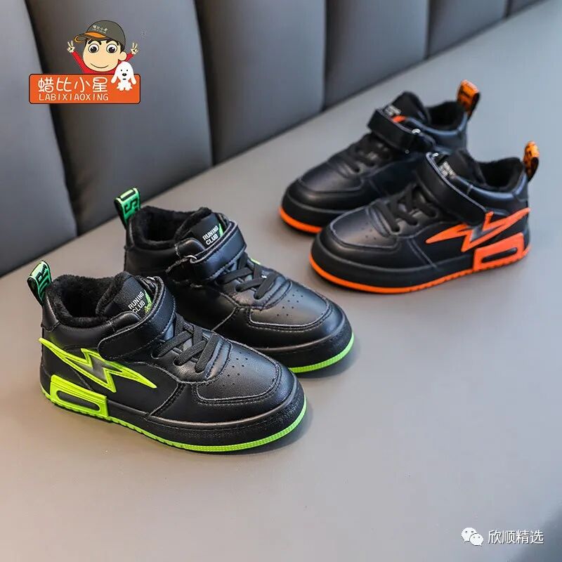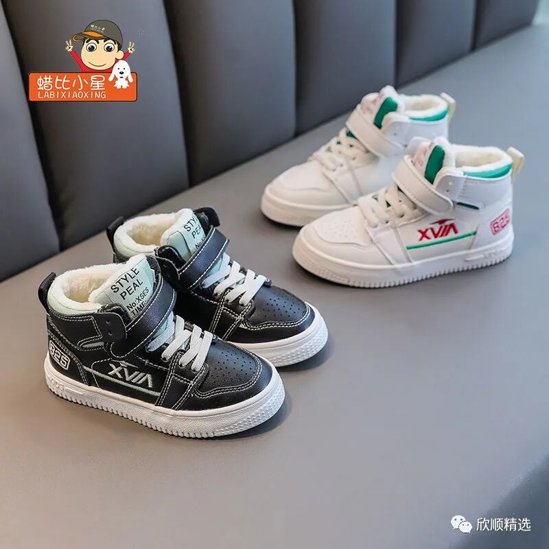 “板鞋加超纤鞋面,保暖内里,橡胶大底,宝宝的冬天不会冷”