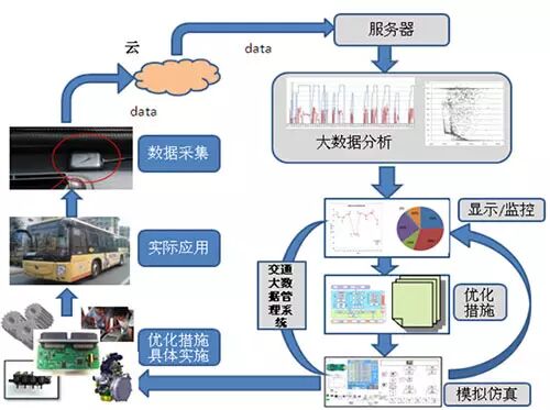 以清华大学汽车工程系为技术依托,通过接收车辆在实际运营中的原始数据,利用技术手段将其解析出来,根据技术和管理需要形成相应的关键指标,并通过大数据的筛选、对比、分析和挖掘,得出能耗的规律,通过车辆优化、驾驶管理、综合管理等最终实现技术节能、管理节能和综合节能。先期在在公交车辆上进行推广应用,实际节能应用在5-8%左右,逐步扩展到长途客运及货运。