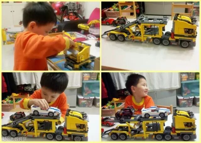 比如:孩子搭挖土机、推土机,刚开始会把挖斗装到驾驶舱的后面,因为平时家里开车,爸爸就是坐在前面的,但搭好后发现不对,挖斗应该安装在驾驶舱前面,方便驾驶员操作。