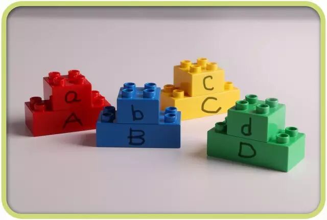 说明 ▼宝宝的想象力是无穷的,试试看还有没有其他的字母拼搭方式吧,如果你们发现了,记得来告诉小乐呀~除此之外,粑粑麻麻还可以在颜色各异的,乐高得宝上标注各字母的大小写。另外,让宝宝在颜色配对的过程中区分英文大小写认识了全部字母,就可以试试拼英文单词啦!是不是很酷呢?
