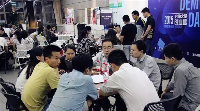 在特训营开营的第二天,课程引入了《体验式培训-项目评审模拟演练》,从启迪之星的在孵企业中邀请9家企业进行路演,分别跟5组特训营学员双向互选,学员们可以一边学习一边将学到的理论知识即时运用,辅导企业做一场优秀DEMO,作为自己的毕业作品。