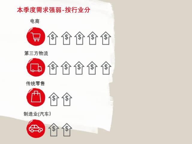 从行业角度来看,零售业年中大促使得电商与第三方物流雨露均沾:以京东为首的多个电商平台本季度在佛山、沈阳、嘉兴等地的整体租赁面积或超57万平方米;由于零售商持续外包物流服务,来自第三方物流公司的租赁需求势头未减,各大物流公司在一、二线城市与卫星城市均有大面积租赁。在核心城市空置率持续压缩的状况下,受惠于较低的租金和相对充足的供应,我们预计2017年下半年卫星城市和二、三线枢纽城市的高标准仓库租赁需求将进一步增长。