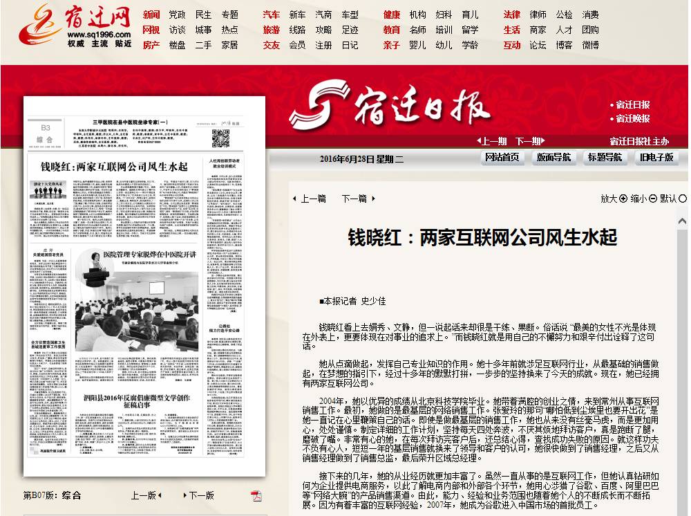钱晓红 女 醉美泗阳电子商务有限公司总经理