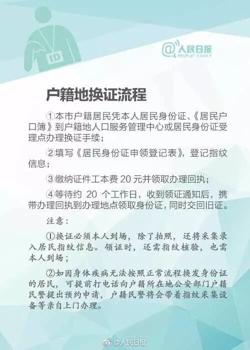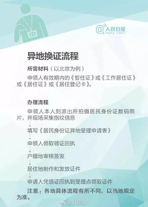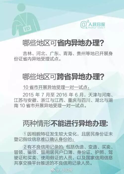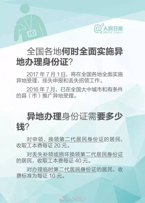 近日,公安部明确:7月1日起,将在全国范围实施异地办理身份证。从此身份证丢失不必回老家补办!异地换领、补办有哪些流程?什么情形下不能进行异地办理?申领、换领二代身份证收费标准是什么?身份证照片拍摄要注意什么?