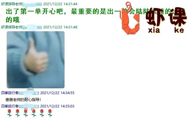 杭州已经下雪了,不知道大家所在的地方有没有迎来今年的第一场雪呢?同时也希望刚刚起步还没开单的学员们不要焦虑,给自己和老师们一些信心,跟随着老师的节奏,我们一定可以有一个好的开端,在年末迎来如飘雪般绵延不断的订单。