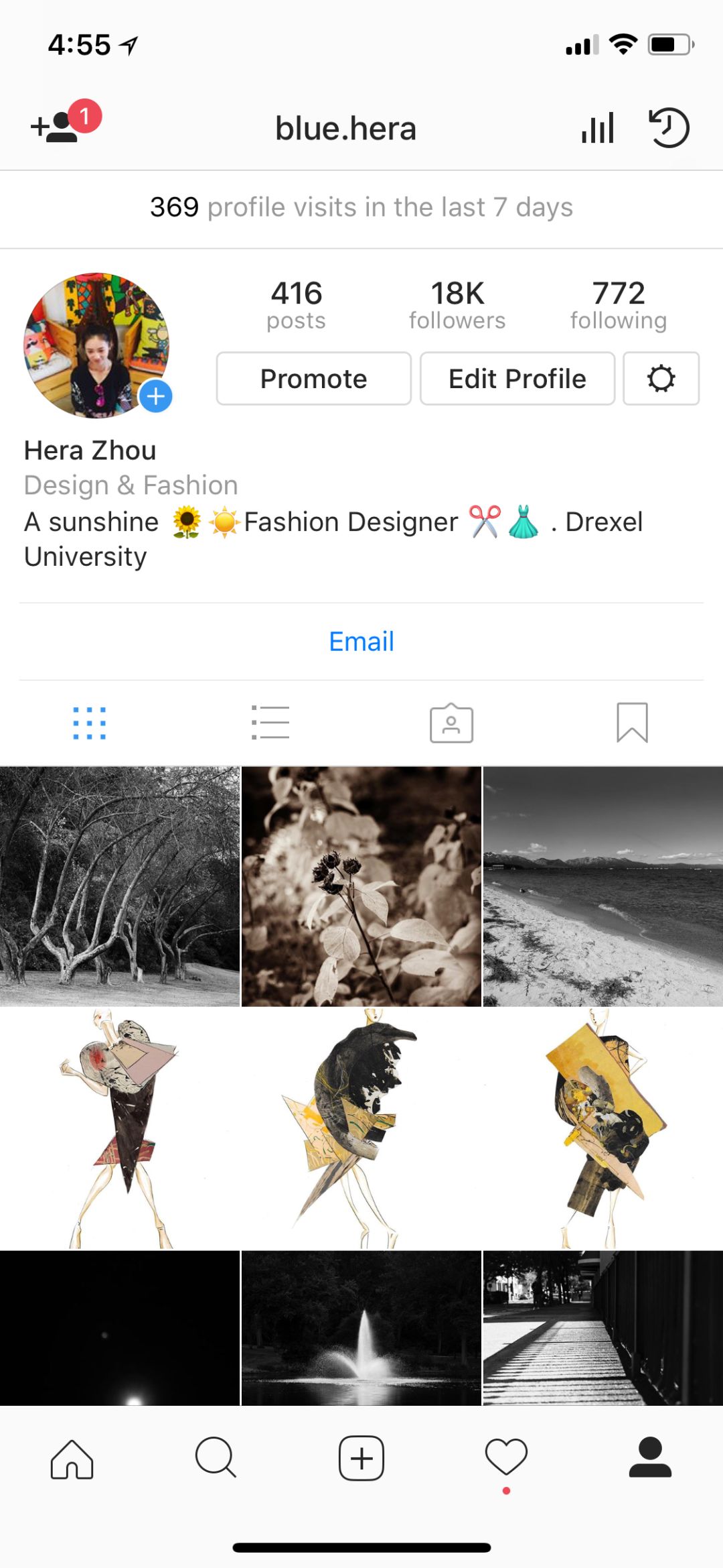 我在服装设计方面还开创了一套独特的设计方法—Neo-Cubism(新立体主义),并为这种分割再拼贴的设计方法开设了Instagram账号:blue.hera , 拥有18k的喜欢设计的粉丝。