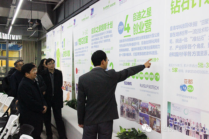 11月19日上午,国家发展改革委振兴司副司长姜四清等领导参观访问了清华科技园启迪创业孵化器,并与创业企业及孵化器进行了深入的座谈交流,中关村管委会副主任王汝芳等陪同参观,启迪控股常务副总裁兼清华科技园党委书记李志强、启迪控股副总裁兼启迪创业孵化器董事长张金生、启迪创业孵化器公司总经理沈全洪接待了来访嘉宾并参加座谈。