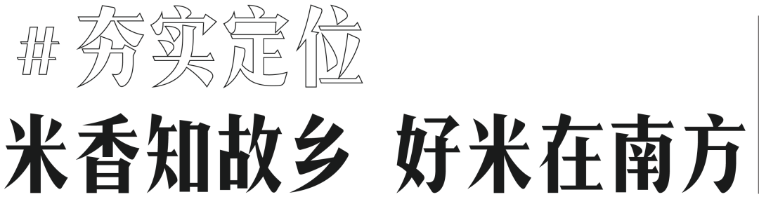 于是“米香知故乡 好米在南方”这个slogan,就不再是句简单的口号和标语,ta为我们提供了整个定位策略的奇点,ta潜在告诉大家:北有五常大米、南有桂平细粒香米,他们各占山头各领千秋。
