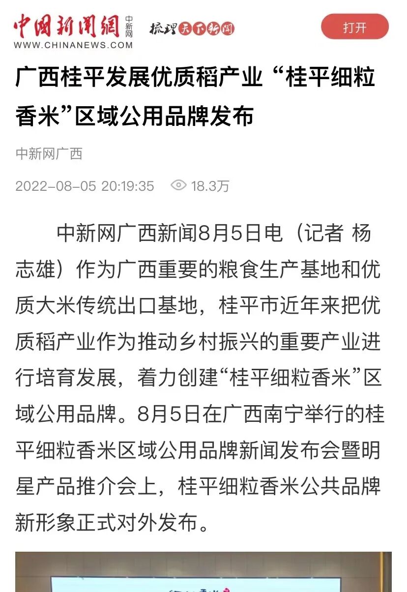 2022年8月5日,我们为桂平细粒香米举办的区域公用品牌新闻发布会暨明星产品推介会上,桂平细粒香米区域公共品牌新形象正式对外发布。