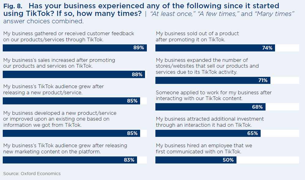 首先是直接影响。TikTok上中小企业的广告与营销活动所创造的收入,直接推动了各项经济活动的蓬勃发展。