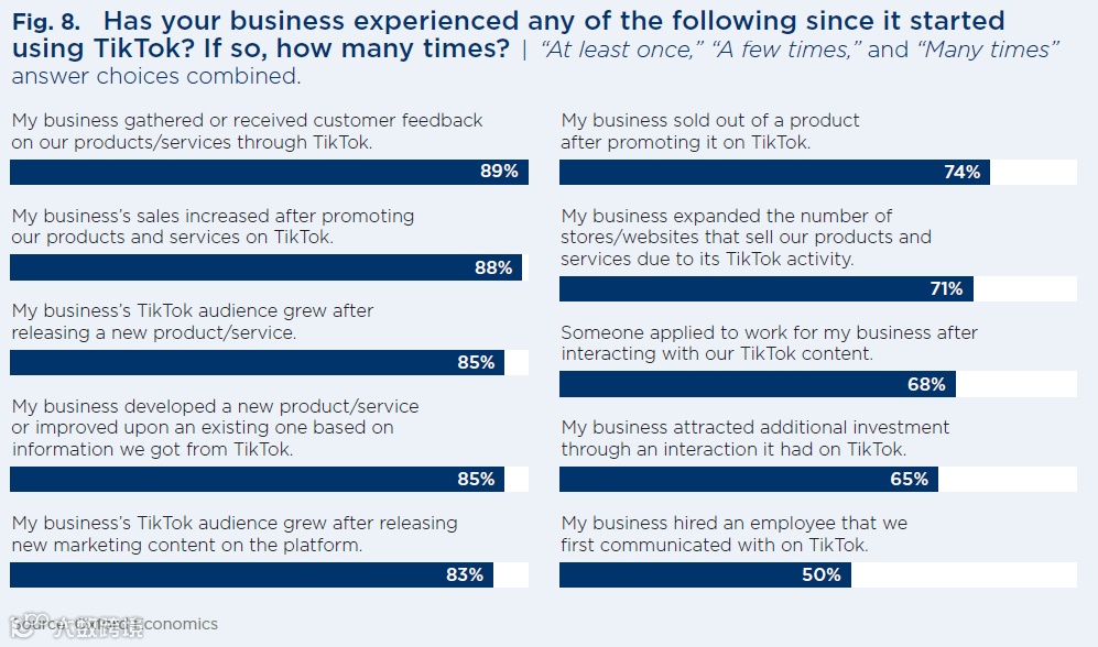 此外,报告还详细阐述了TikTok对于美国经济产生的影响,特别是对于中小企业来说,TikTok无可比拟。可以说,这份权威报告让TT123对TikTok在美国中小企业中的巨大影响力有了更加直观和深刻的认识。