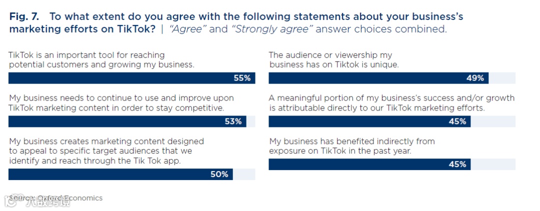 39%的受访企业明确表示,TikTok对他们的业务存续具有不可替代的关键作用。还有52%表示他们依赖于TikTok来保持市场竞争力。