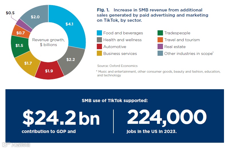 报告明确指出,TikTok已为美国经济中的十几个关键领域注入了高达147亿美元的收入,并在2023年为美国GDP的整体增长贡献了242亿美元。