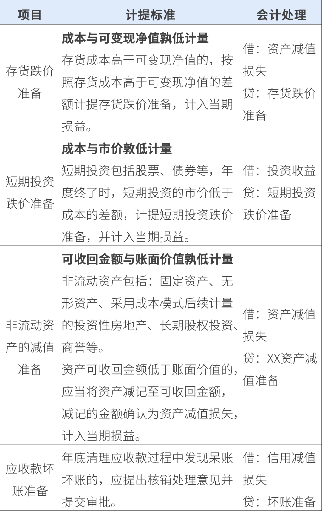 财务需要在年末对各项资产做减值分析,并进行相应的会计处理。总结如下: