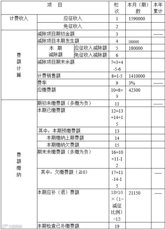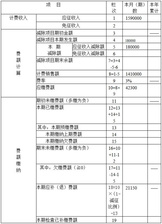 应缴文化事业建设费=计费销售额×3%=(1590000-180000)×3%×50%=21150元
