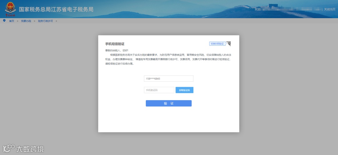 根据国家税务总局关于实名办税的最新要求,为防范用户信息被盗用、冒用等安全风险,切实保障纳税人的合法权益,您在办理增值税专用发票最高开票限额行政许可等事项时需进行短信或“刷脸”验证。