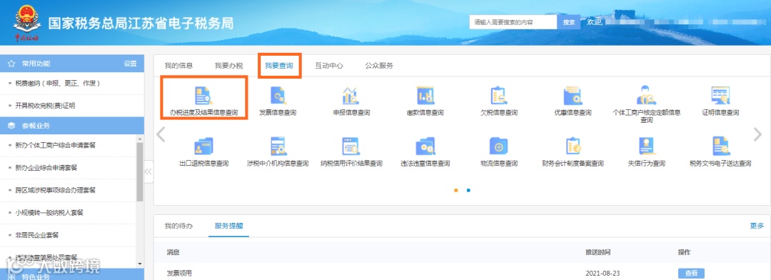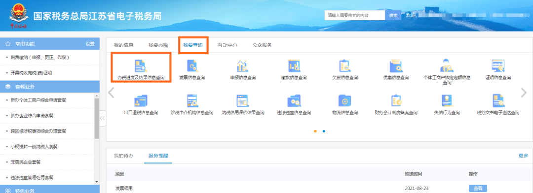 纳税人可通过电子税务局〖我要查询〗→〖办税进度及结果信息查询〗模块,查看办税进度及结果。