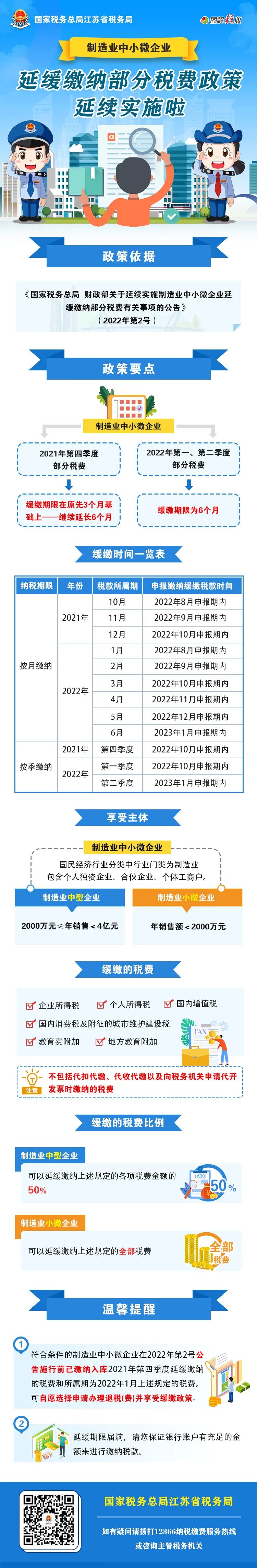 制造业中小微企业,延缓缴纳部分税费政策延续实施啦!
