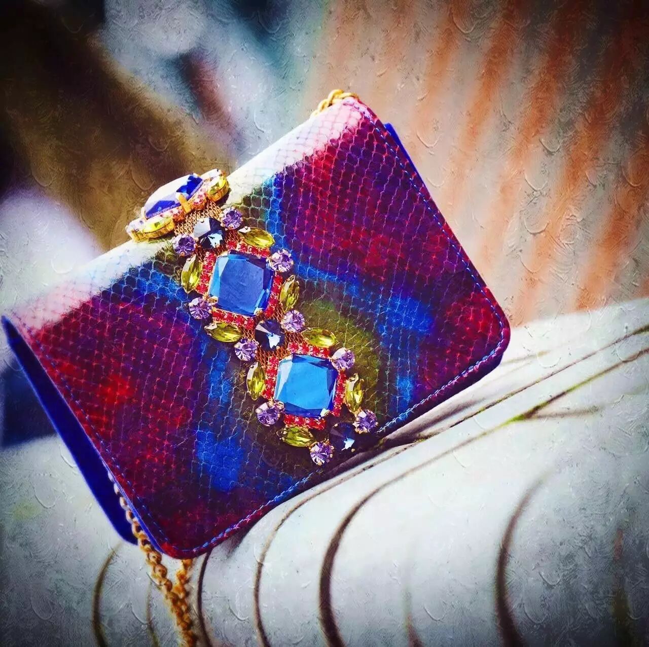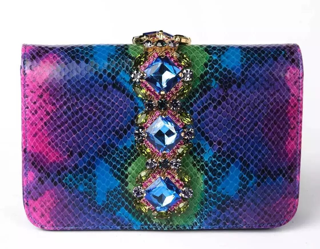 以“Emanuela Caruso水晶蟒蛇皮纹彩色水晶女士单肩包”为主题