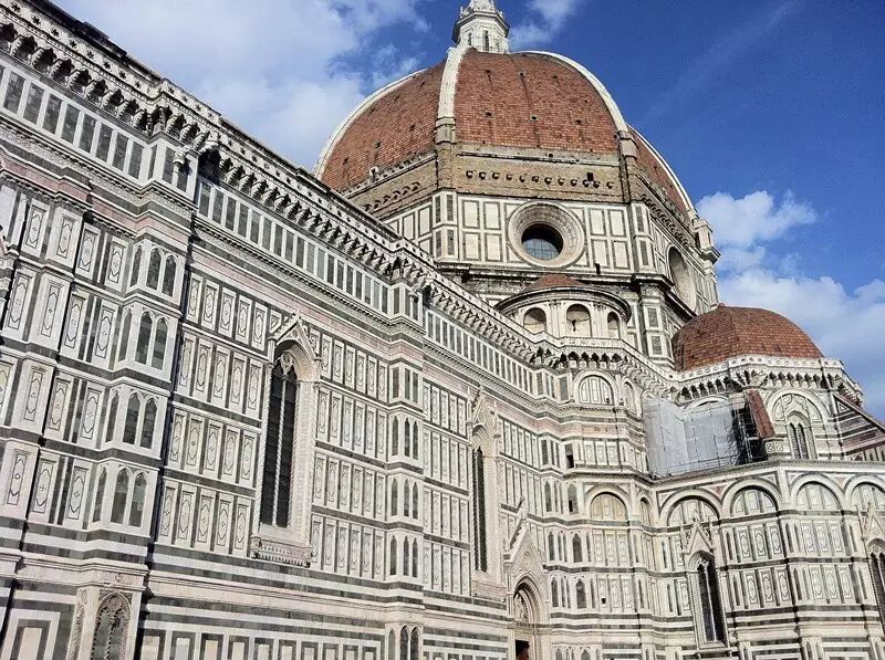 2.参观圣母百花大教堂,佛罗伦萨地标,是世界五大教堂之一,世界第四大教堂,建筑艺术的精华。佛罗伦萨大教堂不仅以其建筑闻名,而且也是一座藏有许多文艺复兴时期艺术珍品的博物馆。收藏的珍品中有意大利雕刻家多纳泰罗的作品《先知者》雕像,意大利雕刻家狄•盘果约1420年在大教堂侧门上雕刻了《圣母升天图》。大教堂内陈列着各种绘画,其中有一幅1465年画的但丁像。