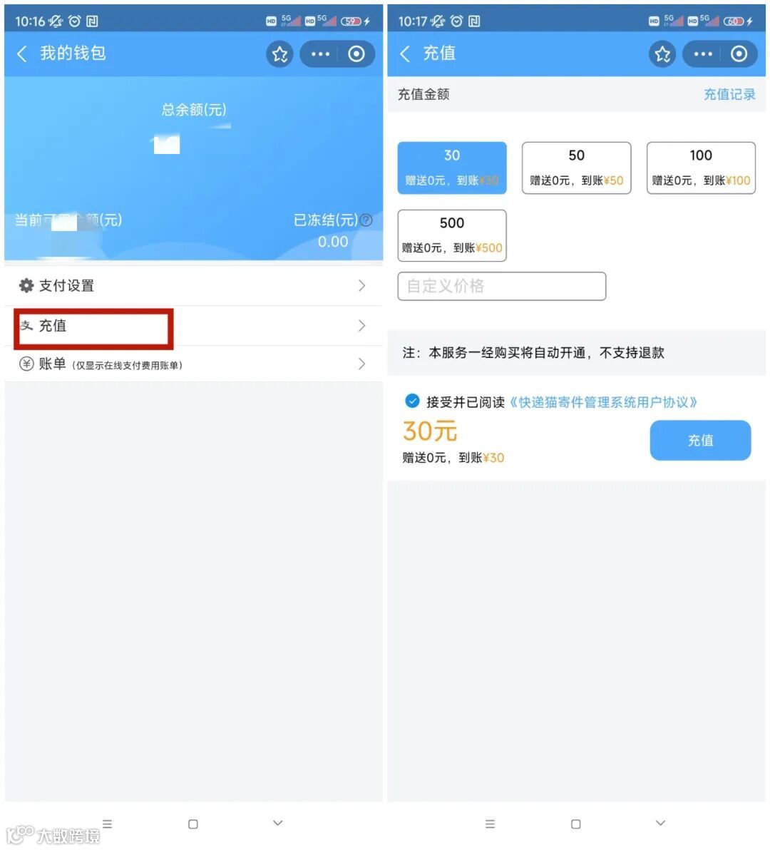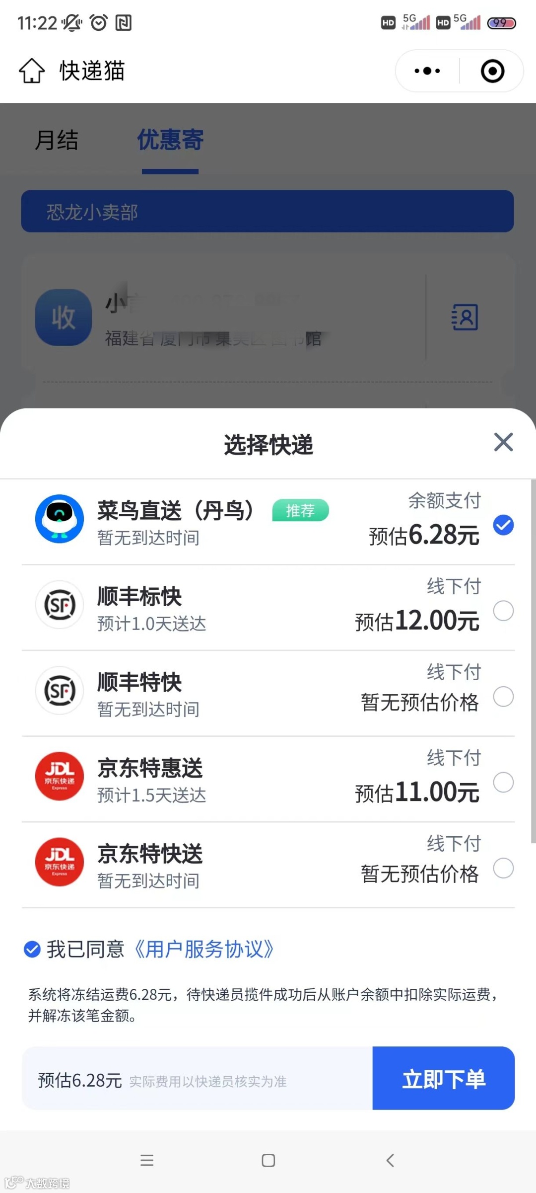 7、充值后,返回递小宝(或快递猫通用版)账号进行 优惠寄 授权码设置;设置后即可邀请用户进行寄件下单。