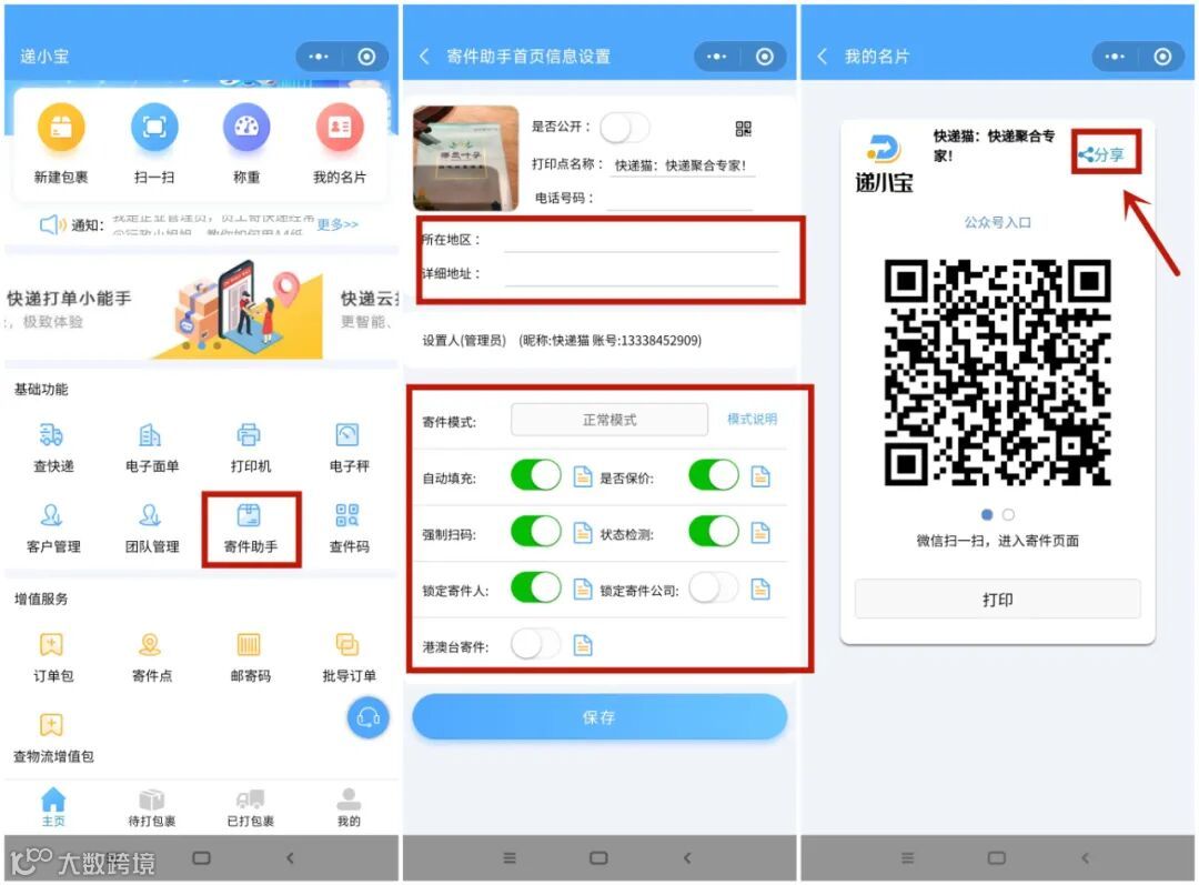 分享寄件下单二维码,邀请客户寄件;或者 直接在递小宝首页【新建包裹】进行快递打单。