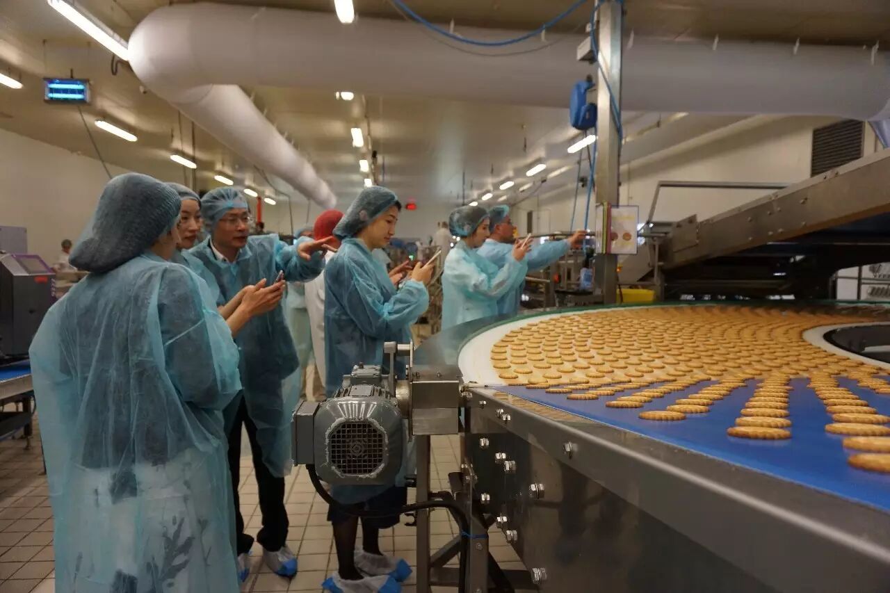 爱奢汇工作组和VIP会员了解饼干制作流水线ING