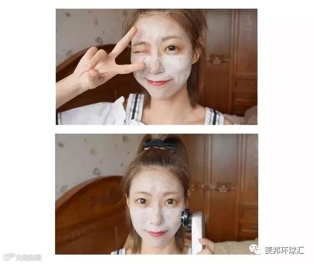 然后选择了一款补水面膜,涂满全脸后,用yaman只按摩左边的脸,过5分钟后,进行对比,